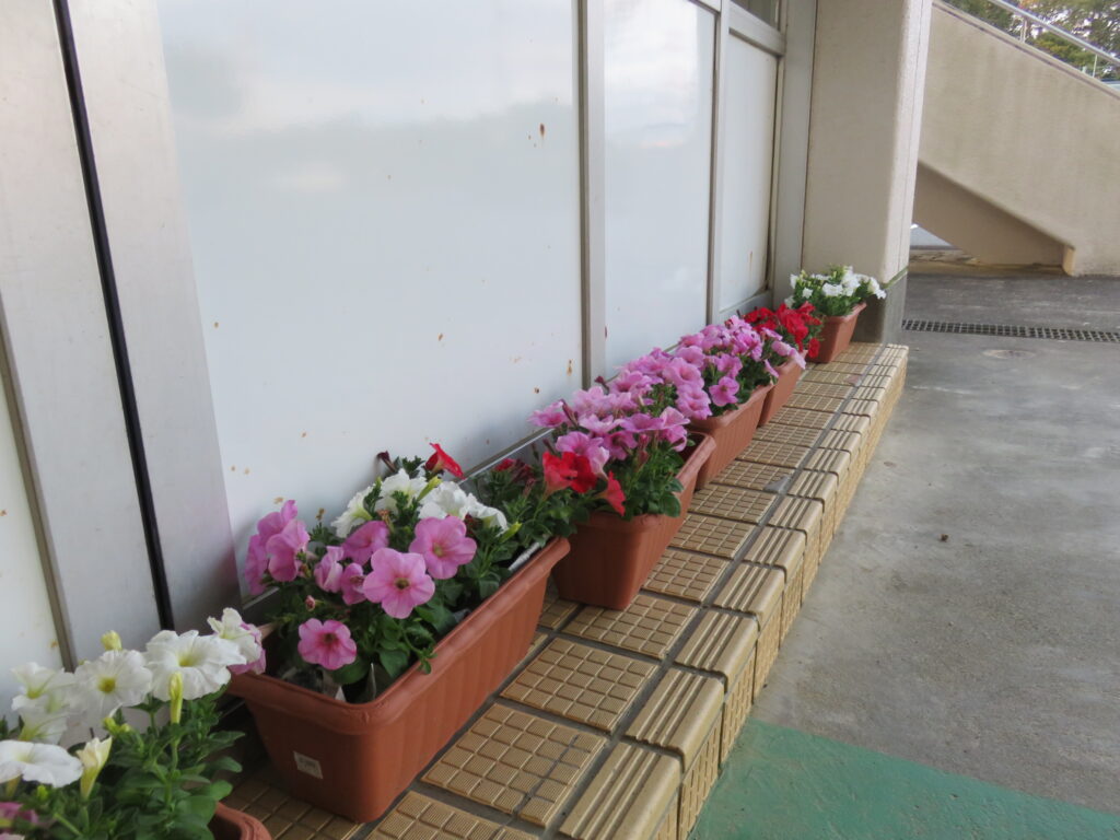式場には、先生方や子供たちが育ててきた花も飾られました。ひときわ大きなペチュニアは、小笠高校からいただいたものです。多くの方のお祝いの気持ちが明日はきっと届くことでしょう。
